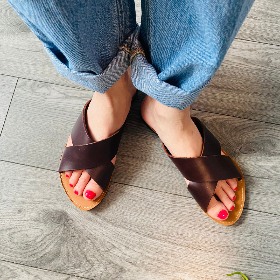 Genuine leather slides that are sustainably crafted for beauty and comfort.