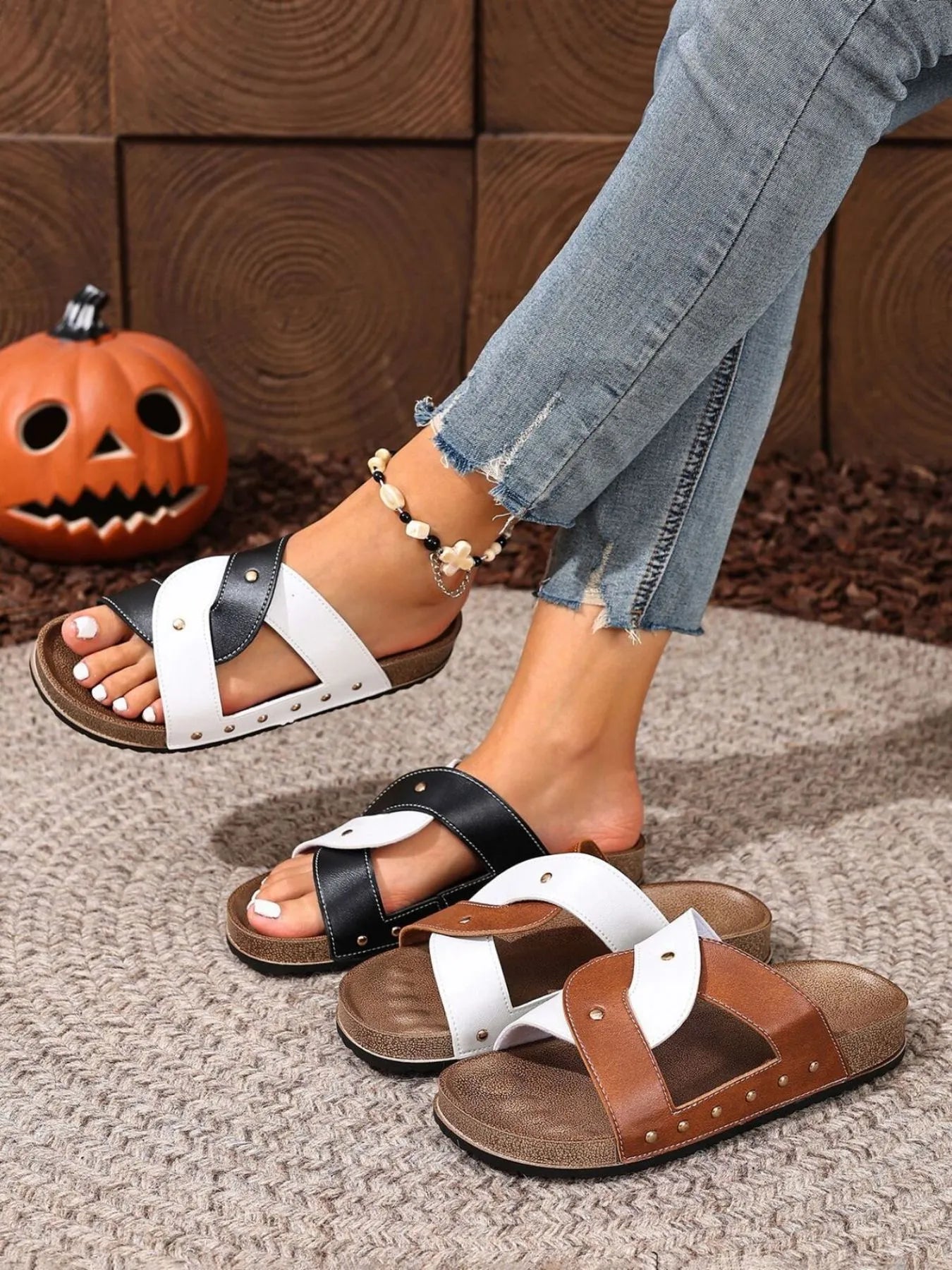 Clio These sandals will be an elegant addition to your wardrobe. Handmade with two soft leather straps this two-color design is ideally matched with summer dresses or an elegant evening look. Choose from the two different color combinations depending on your style and mood$ 39.00