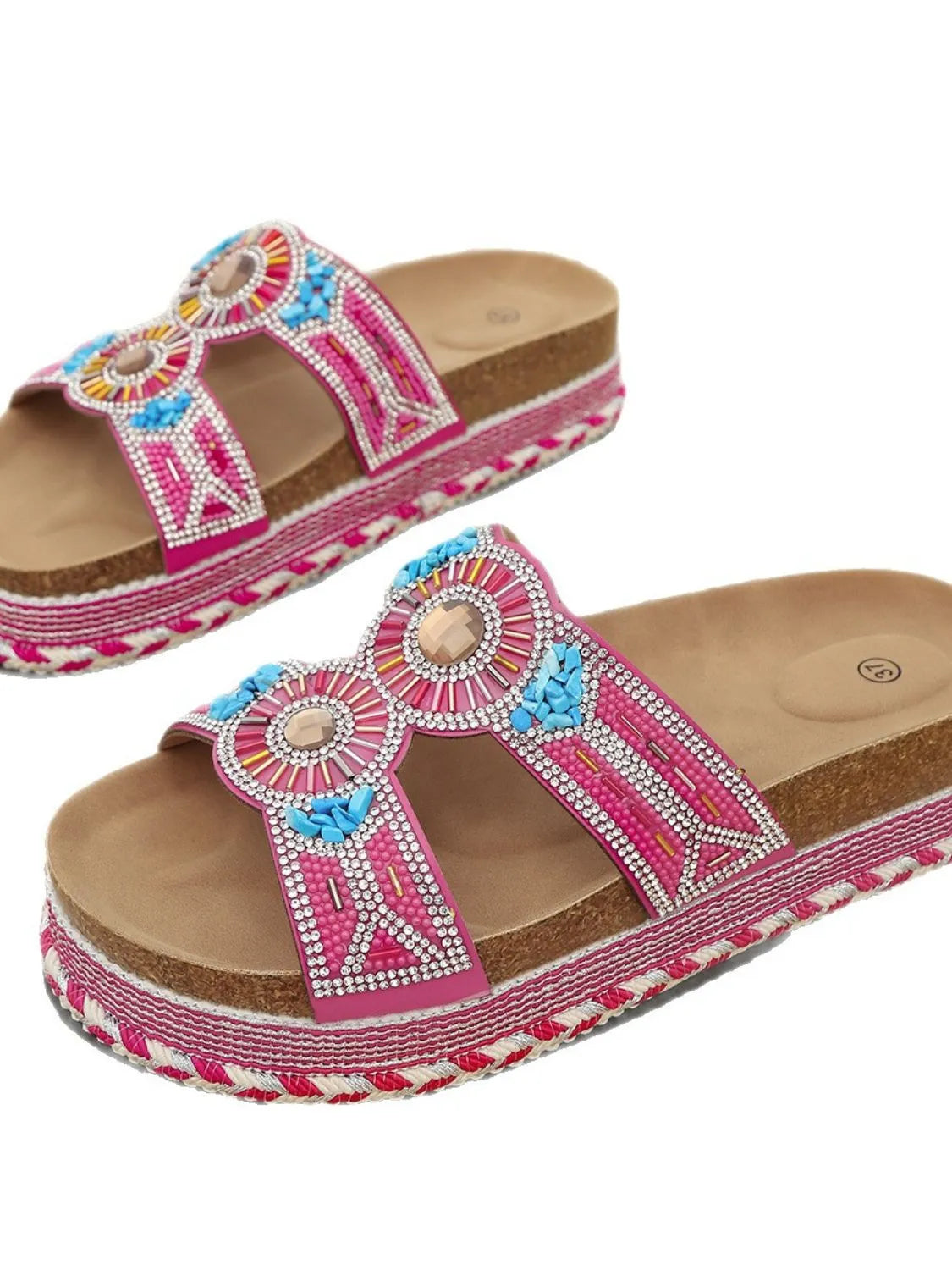 Create a variety of trendy outfits with this pair of chic chunky gem-studded sandals! Order them now and love them for effortless style in your everyday fashion, taking you from a workday to a night on the town!